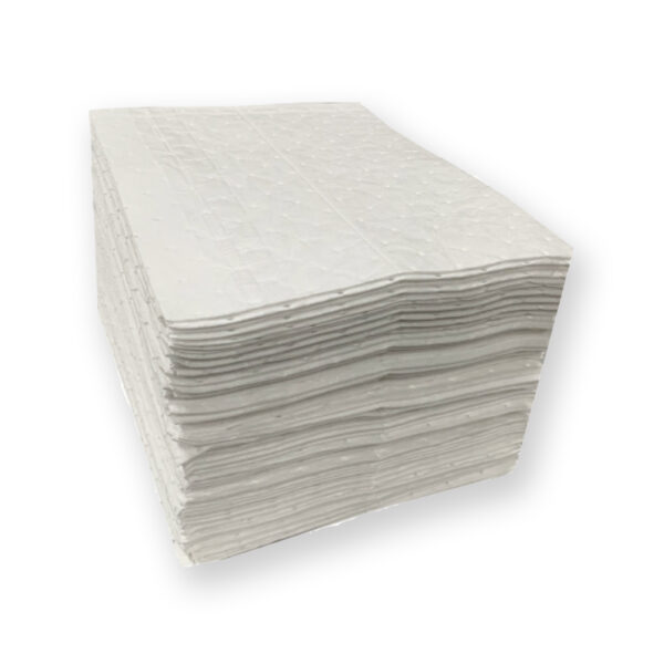 Our standard line of meltblown (MB) white oil-only pads absorbs hydrocarbon-based fluids and repels water. These pads are most commonly used outdoors to absorb oil-based spills, and for common everyday maintenance applications (oil leaks, around machinery). These pads will float on water to absorb marine oil spills and they are supplied in varying weights for a customized application and value priced solution. Bonded pads help to lower the lint, perforations help to reduce waste.